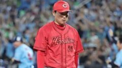 続くバッターはここまで10打席連続ノーヒットの松山竜平を約1ヶ月半ぶりに何とか復調のきっかけにとスタメン起用した新井監督でしたが、敢え無くセカンドフライに倒れます。